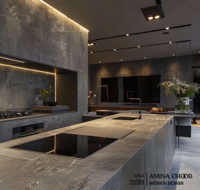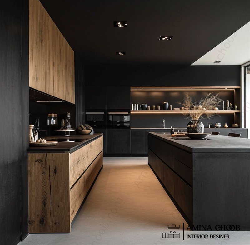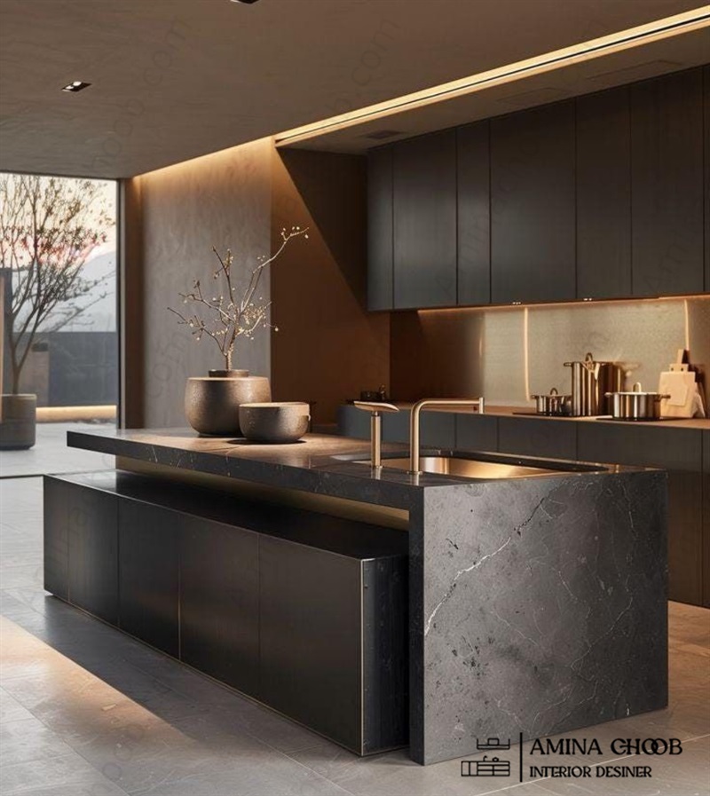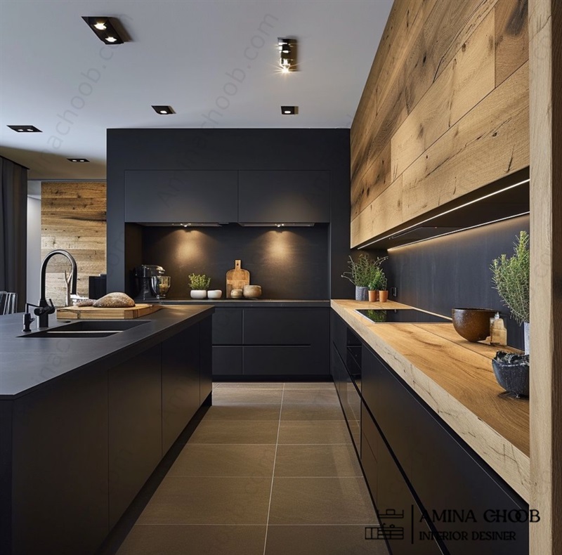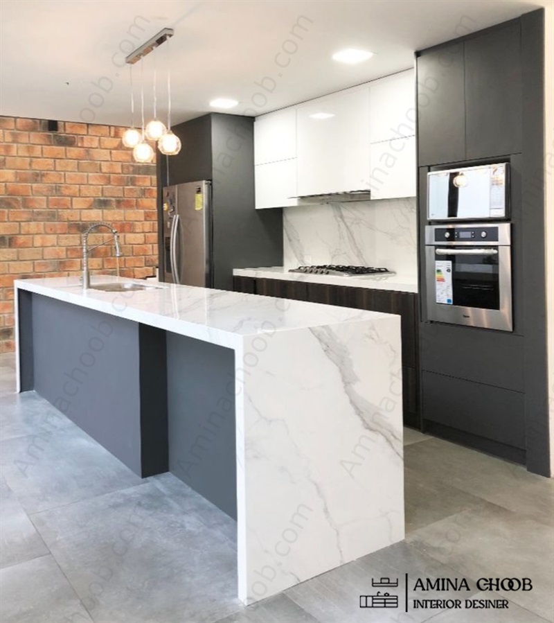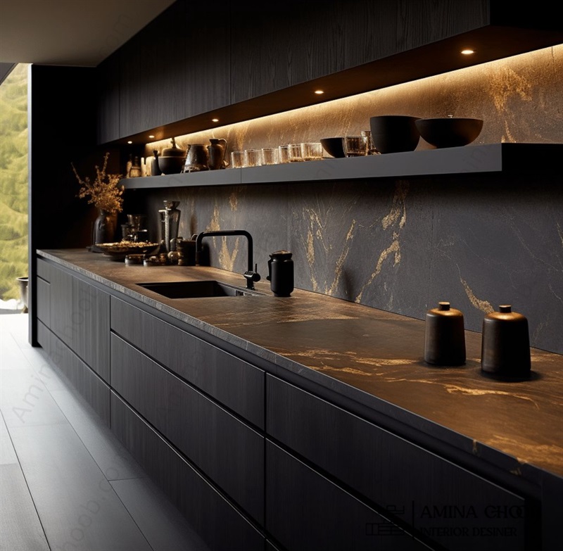 استفاده از طراحی حجمی و مواد براق باعث میشود آشپزخانه کوچک شما بزرگتر و دلبازتر به نظر برسد.