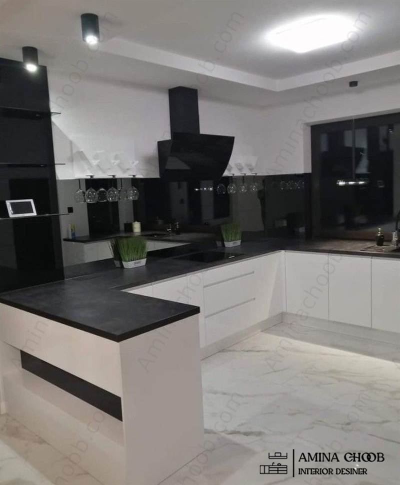 سطح براق هایگلاس با انعکاس نور، فضا را روشنتر نشان میدهد و حس بزرگتر بودن آشپزخانه را القا میکند.