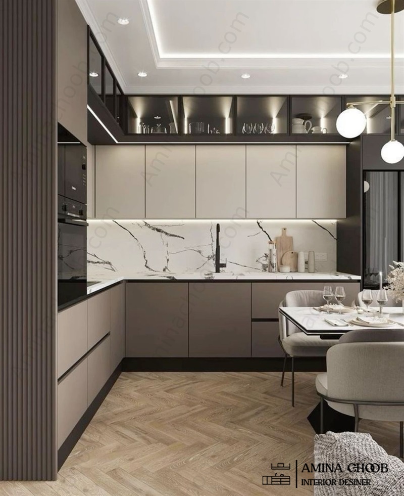 این کابینتها به دلیل ظاهر شیک و ساده، گزینهای عالی برای آشپزخانههای مدرن هستند.